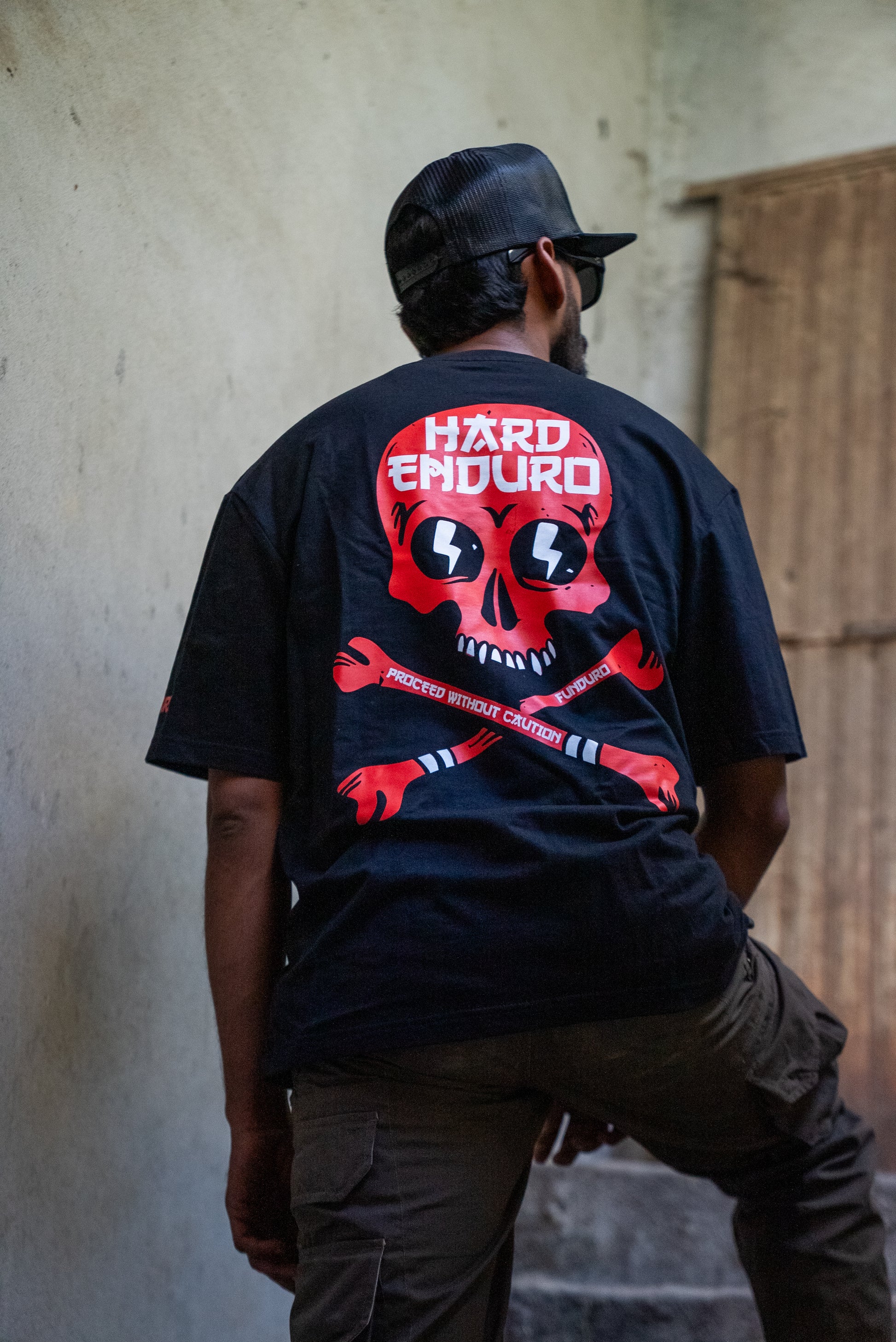 FUNDURO Oversized T-Shirt - Skull & Bones - Black/Red